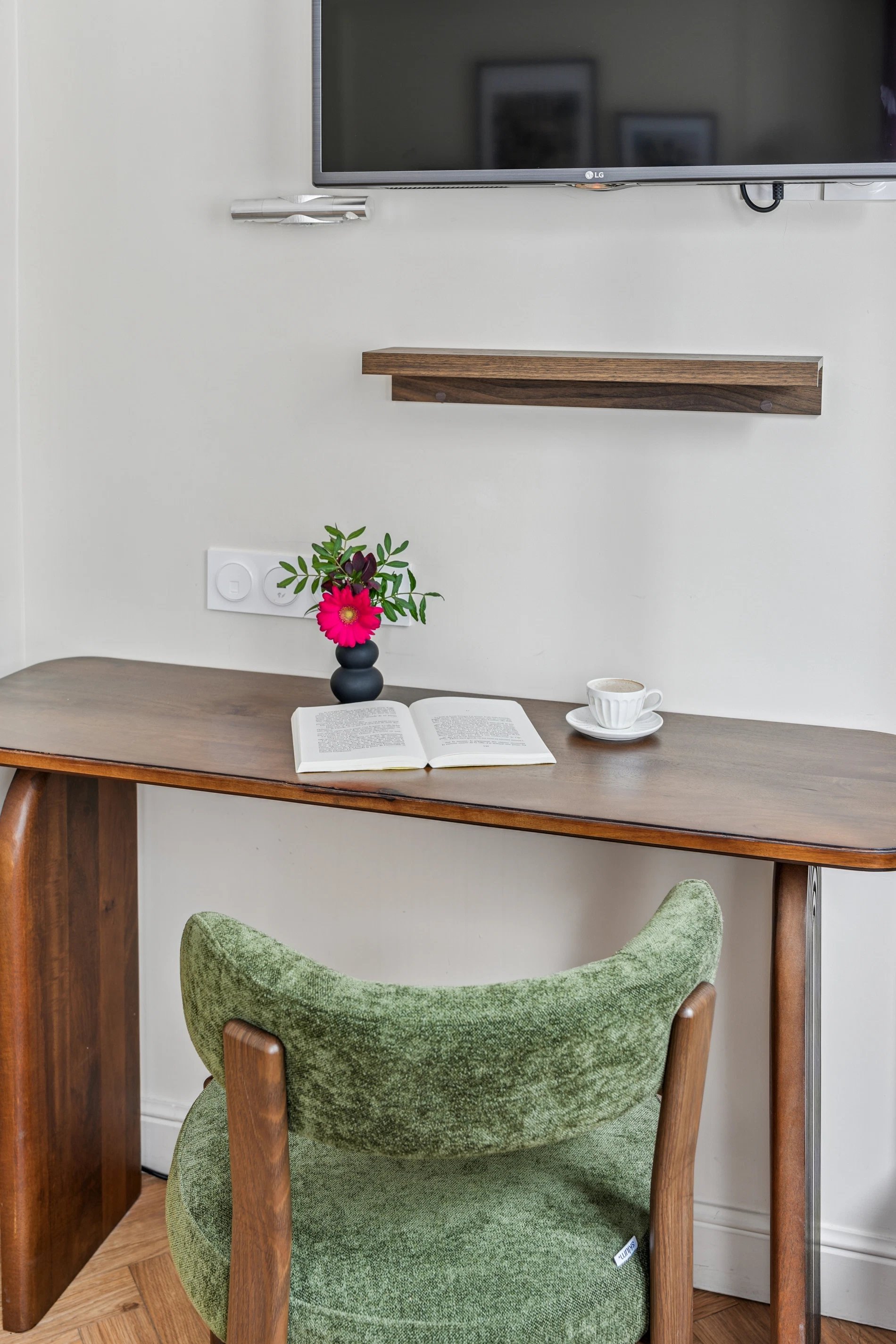 Dans notre écrin parisien, le temps suspend son vol, des chambres confortables au décor soigné, un service personnalisé, et une situation idéale pour explorer la Ville Lumière au rythme du flâneur, entre curiosité et douce paresse.